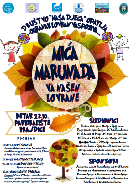 U organizaciji Društva „Naša djeca“ Opatija – ogranak Lovran, 23. listopada, od 13 do 18 sati, održat će se tradicionalna dječja manifestacija Mića marunada koja će se odvijati na parkiralištu Brajdica u Lovranu. DND Opatija – ogranak Lovran i ove je godine ponudilo bogat program iz područja dječjeg stvaralaštva koji…...