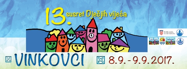 Susret Dječjih vijeća Hrvatske će se održati 8. i 9. rujna 2017. godine. Otvorenje Susreta će se održati u prostoru Gradske vijećnice Grada Vinkovaca, Bana Jelačića 1, a započet će 8. rujna 2017. godine u 11 sati. Domaćini ovogodišnjeg 13. Susreta Dječjih vijeća Hrvatske su Društvo „Naša djeca“ Vinkovci, Dječje gradsko…...