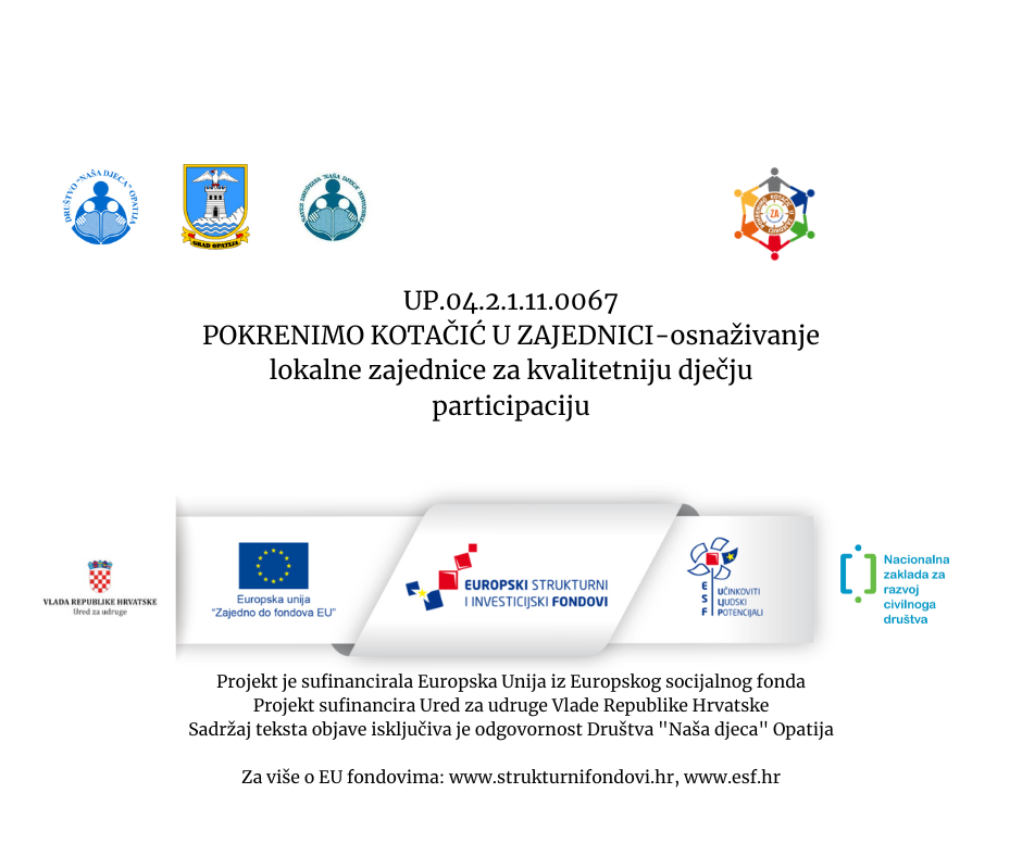 Priručnik “Djeca pomažu djeci” dostupan je na mrežnim stranicama Društva “Naša djeca” Opatija i na našim stranicama na sljedećem linku: Djeca pomazu djeci_prirucnik U okviru projektne aktivnosti 4. Organiziranje volonterske akcije “Djeca pomažu djeci” izrađen je priručnik – “Djeca pomažu djeci” za volontiranje u kriznim situacijama, prema konceptu vršnjačke pomoći, kao smjernice…...