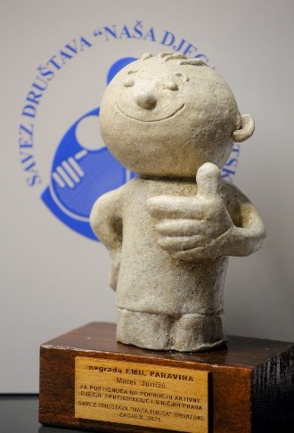 IZABRANI SU OVOGODIŠNJI DOBITNICI NAGRADE „EMIL PARAVINA“ 2022. Nagrada djeci za promicanje dječjih prava, dječje participacije, suradnju i pomoć vršnjacima