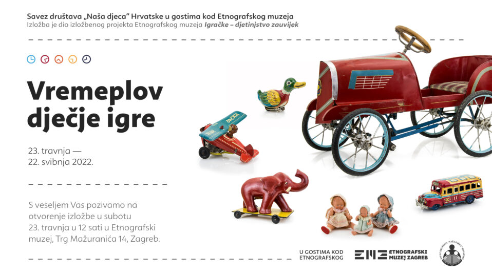Našom gostujućom izložbom pod nazivom “Vremeplov dječje igre” koja se otvara u subotu, 23. travnja 2022. godine, u 12 sati završava veliki izložbeni projekt Etnografskog muzeja Igračke – djetinjstvo zauvijek. Dječji zbor „Zabočki mališani“ Društva „Naša djeca“ Zabok glazbom će popratiti otvorenje te vas ovim putem sve pozivamo da u narednih mjesec…...