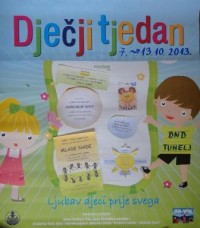 U suradnji s OŠ Lijepa naša Tuhelj organiziran je skup djece na školskom igralištu, u srijedu 9. listopada u 12.00 sati. Držeći se za ruke svi učenici i nastavnici škole formirali su dva velika kruga. Nakon pozdrava predsjednice DND-a Tuhelj Snježane Romić viknuli su već svoj djeci poznati moto„Ljubav djeci…...