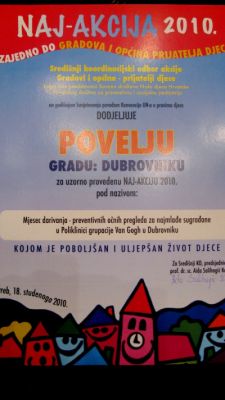 Zamjenica gradonačelnika Šimac Bonačić je istaknula da je ova nagrada potvrda uspješnosti te će se Grad Dubrovnik maksimalno zalagati za jačanje uloge Društva među dubrovačkim osnovnoškolcima. Nagradu za najbolju akciju Društvo Naša djeca Dubrovnik prima treću godinu za redom, a ovaj put se radilo o akciji preventivnih pregleda vida djece…...