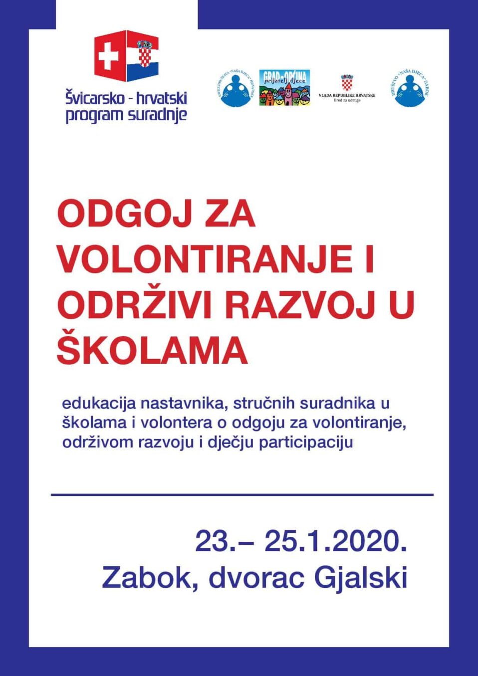 Savez društava “Naša djeca” Hrvatske je u svibnju prošle godine pokrenuo projekt “Odgoj za volontiranje i održivi razvoj u školama” u okviru Švicarsko-hrvatskog programa suradnje. Provedbu projekta nastavljamo edukacijom u Zaboku, u dvorcu Gjalski, a sudionici edukacije su iz Gospića, Slatine i Zaboka, uz radni dio edukacije očekuje ih i…...